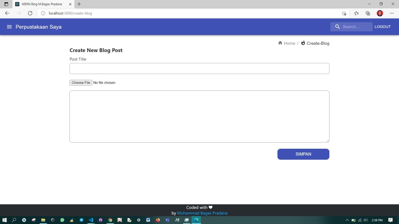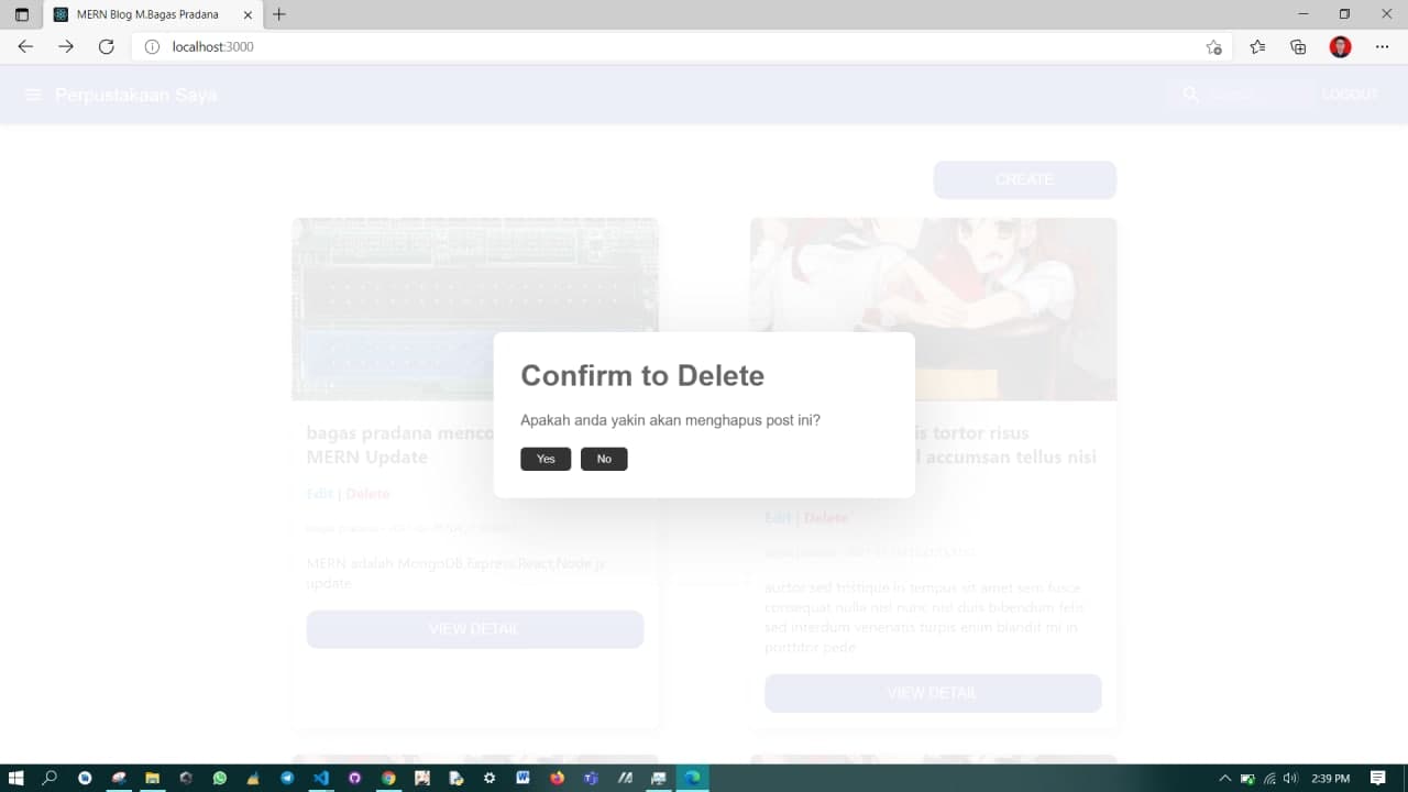 MERN Blog is my MERN Stack project where this website is in terms of data security according to the standards of modern foreign startup websites. this website can do the CRUD process perfectly without any duplication of data because each response is mapped to a different id. I don't focus on the UI appearance but more on the UX and security processes. don't forget that during the development process I used the Atomic Design approach because it was very in line with the react philosophy itself.