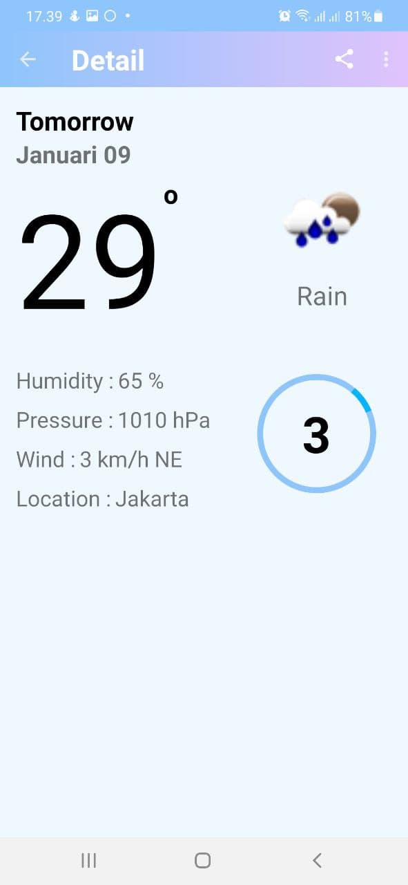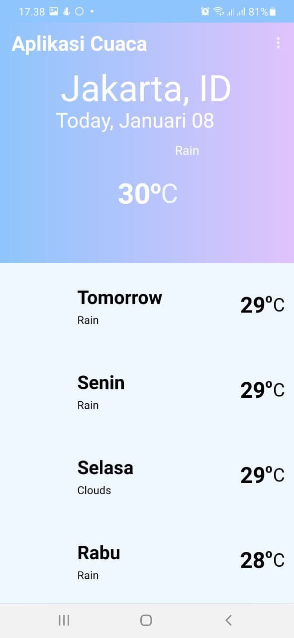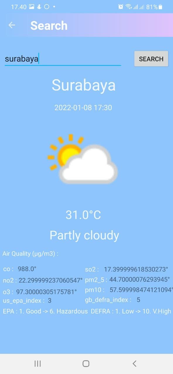 Is an application that can display the weather based on current conditions and the next 5 days. Has a search feature that can see weather conditions in other regions
